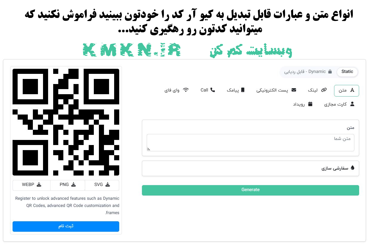 - QR کد پویا : لینک داخلش رو میتونی بعداً تغییر بدی، بدون اینکه خود QR کد عوض بشه!